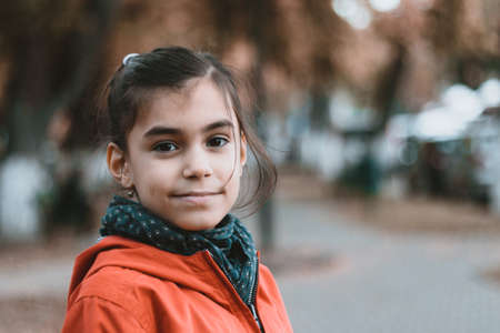 Portrait of a young girl in a park. Horizontal shot with natural light.