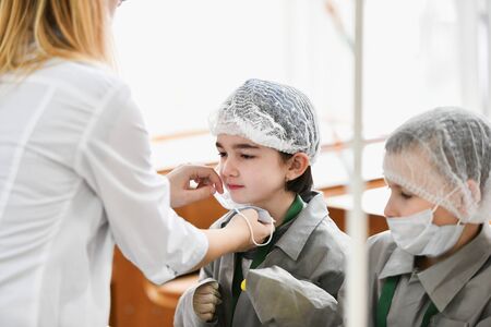 The doctor teaches young specialists in practice. Teaching medicine. Young doctors at a seminar in a hospital. Children and medicine KHARKIV, UKRAINE - JANUARY 20, 2020.