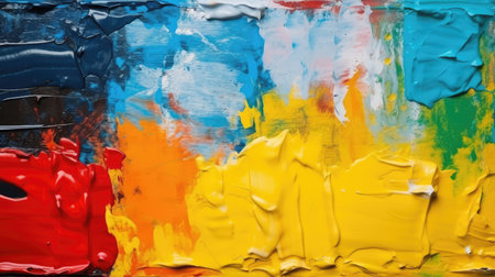 Abstract Art Background, Colorful Oil Paint Strokes on White Canvas, Yellow, Blue, and Red Texture
