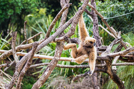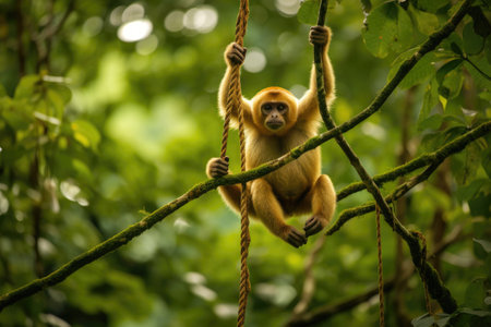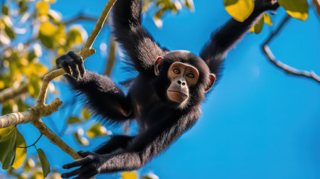 Yellow-cheeked gibbon in the rainforest of Belize, A gibbon hangs from a tree in the jungle of Costa Rica, AI Generated