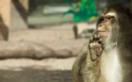 Close-up portrait of a monkey, Strait of Gibraltar, Spain. With selective focus