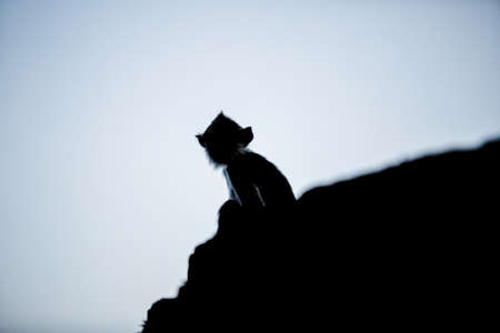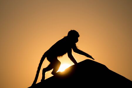Silhouette of a one monkey in sunset