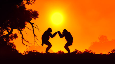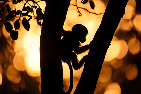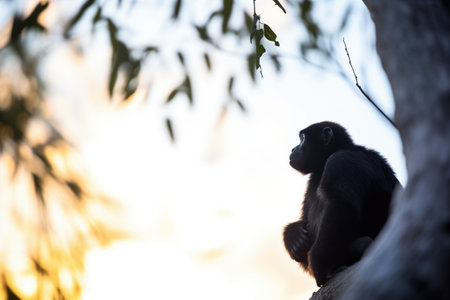 Silhouette of monkey at sunset. Animal in wild nature. Created with Generative AI