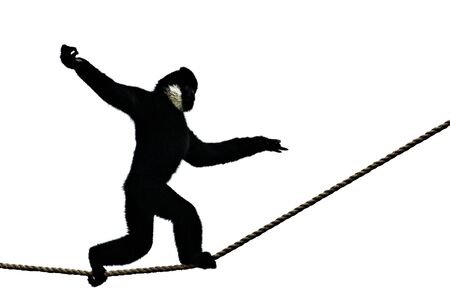 Semi-Silhouetted Monkey Walking on Rope