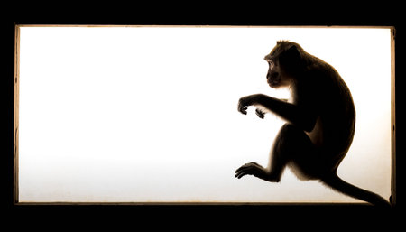 Monkey silhouette in front of a white frame on a black background