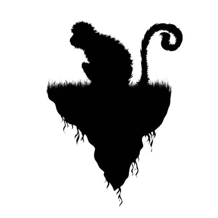 Vector silhouette of piece of land with monkey on white background. Symbol of nature and planet.