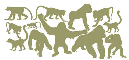 A set of animal silhouettes. Ape and Monkey collection - vector silhouette.