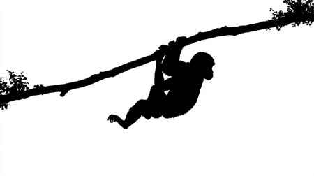 Playful monkey swinging on tree branch with minimalist style