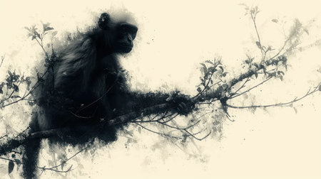 illustration silhouette monkey background. Generative AI