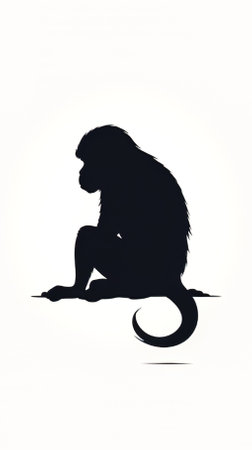 Flat silhouette of a sitting monkey, generative AI.