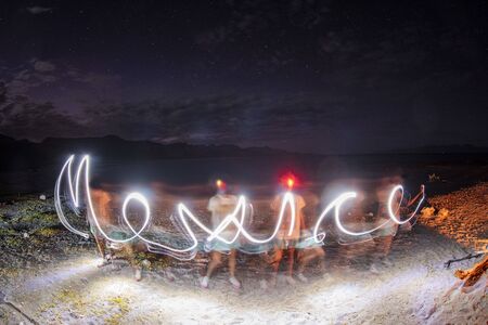 Abstract surreal concept. Giant animal bone in dark. Night with fog and light on background. Selective focus