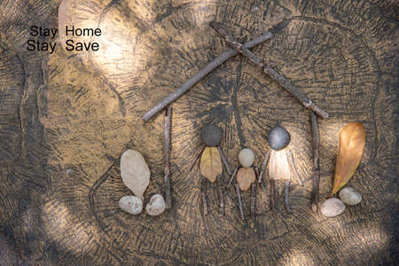 stay home, stay safe concept of self quarantine at home as preventative measure against virus outbreak. Flat lay with inspiration quote, staying at home during pandemic. healthy concept