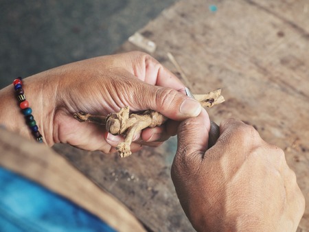 Rapee ceremony. Healing herbs and dust preparing to snuff by tepi bamboo handmade pipe
