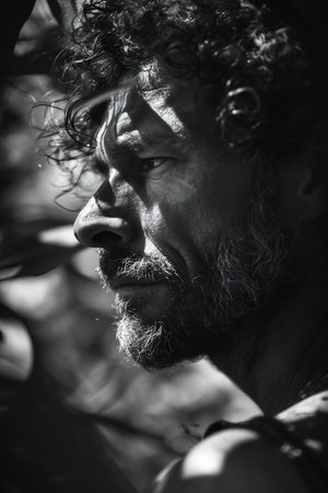 Mysterious Jungle man. Sport park summer. Generate Ai