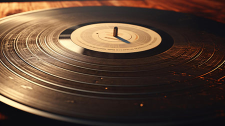 close-up of vintage vinyl record on turntable, created with generative ai