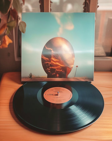 A close up of a record sitting on top of another, AI