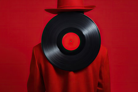 Generative AI : photo of Vintage vinyl record with red label retro film filtered instagram style