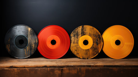 Vibrant vinyl records in various shades on a table