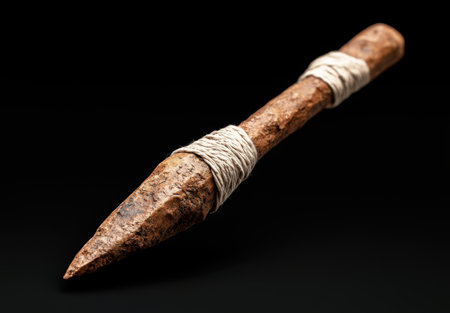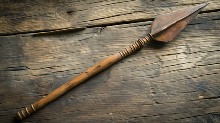 AI Generated. Traditional Handcrafted Wooden Spear with Metal Tip and Rustic Design