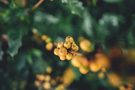 Yellow berry coffee at the coffee tree,Yellow coffee beans
