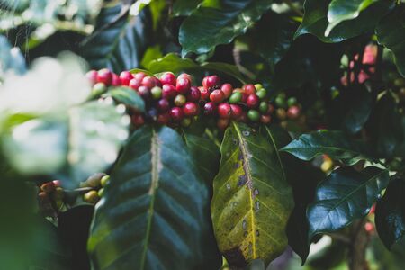 Coffee beans ripening on tree in North of thailand