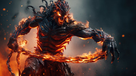 3D rendering of a monster with a burning body and flaming flames