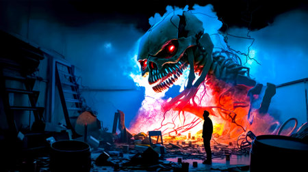 monster fire smoke. hell color face. Generate AI