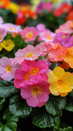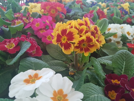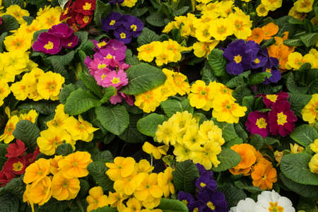 A high angle closeup shot of colorful Primroses - great for wallpapers