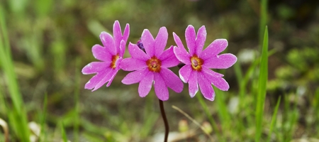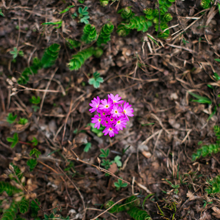Blooming little pink meadow flower in the garden. Spring flowers close-up