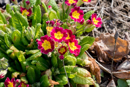 Close-up of vibrant primrose flowers showcasing various colors, adding beauty to a spring garden