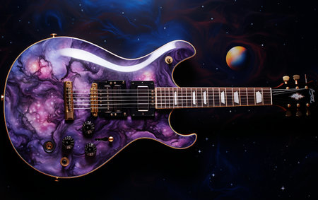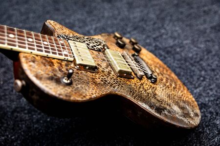 fragment of musical instruments.electronic guitar with a gradient from darkly red to a tree with a leather covering