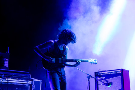 FARO, PORTUGAL: 5th SEPTEMBER, 2019 - Pop Rock band Bruno Pernadas, performs on Festival F, a big festival on the city of Faro, Portugal.