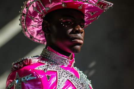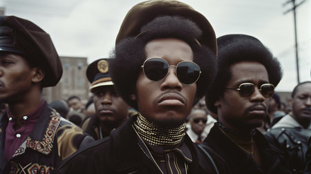 Confident Black man in retro disco outfit celebrating Afro style, culture, and expressive fashion from the vintage era.