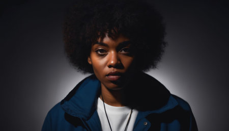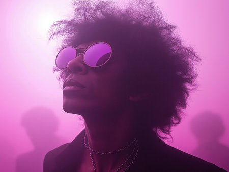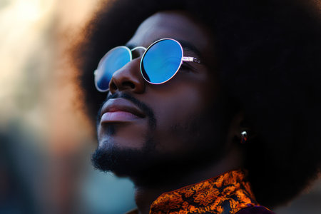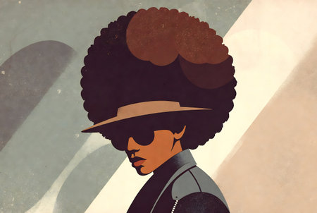 Fashionable african american woman with afro hairstyle wearing sunglasses.