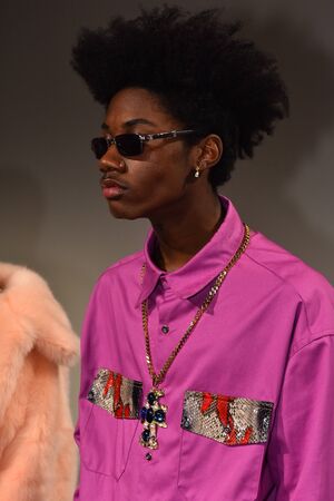 NEW YORK, NY - FEBRUARY 01: Models pose at the Landlord - Presentation at Skylight Clarkson North on February 1, 2017 in New York City