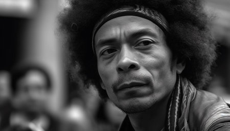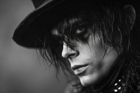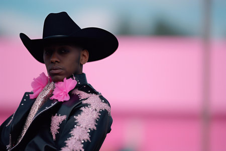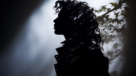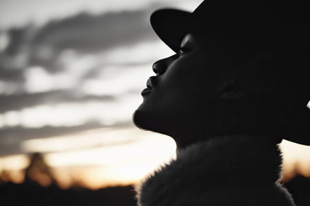 a michael jackson silhouette music art featuring the iconic artist in a close-up, naturalistic shadowed portrait. this unique piece, inspired by rococo portraitures, captures the afro-caribbean influence in michael jackson's music. shot with the petzval 85mm f22 lens, the 32k uhd image showcases a feminine portraiture style. ai generated