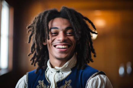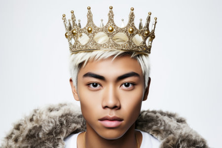 A picture of a man wearing a crown on his head. This image can be used to represent royalty, leadership, or a king.