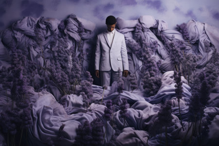 Lavender Serenity: An Enchanting Scene of a Person Standing Amidst a Bed of Lavender Flowers