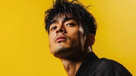 Thoughtful Asian Man Against Yellow Background, Studio Portrait. A.I.