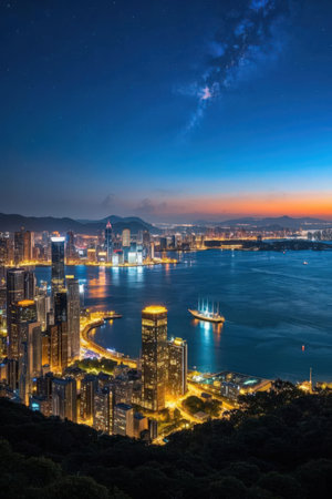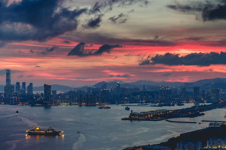 Hong Kong cityscape at night. Hong Kong is the most densely populated of the five boroughs of Hong Kong.