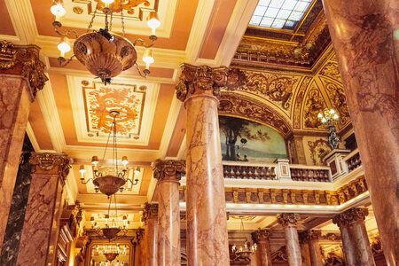 Monte Carlo, Monaco - September 17, 2016: A view of the lobby of the Casino de Monte-Carlo. Beautiful interior of the casino in Monaco with marble and gold decoration
