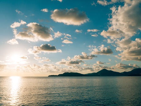 Blue sunset sky with clouds over the horizon over the Adriatic Sea
