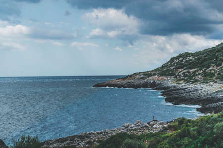 Mediterranean coast and cloudy sky, beautiful panoramic sea view and coastal nature scene