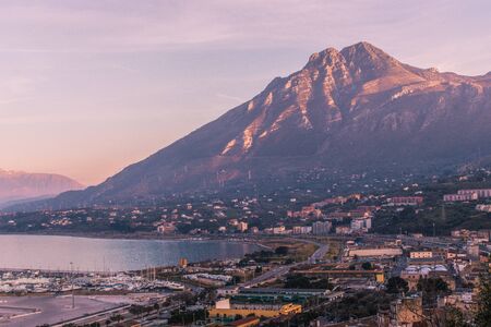 The port of Termini Imerese with the lights of the sunset on the Massif of Termini
