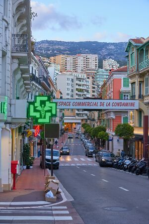 Monaco - April 05, 2019: Beautiful view of Rue Grimaldi street