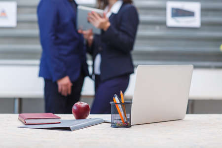 colleagues laptop and documents on the table officials