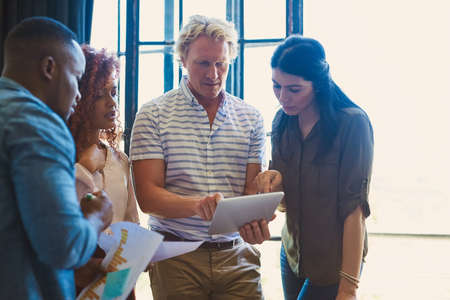Streamlining the creative process with smart technology. a diverse group of businesspeople using a digital tablet together in a modern office.