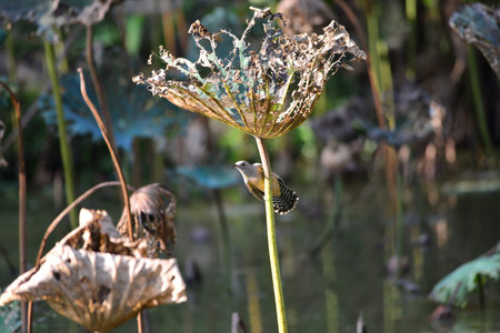Plain Prinia (Prinia palustris) perched on a flower