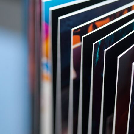 Close-up of stacked pictures