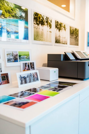 Modern inkjet printer printing high quality photos on photo paper in a bright white office